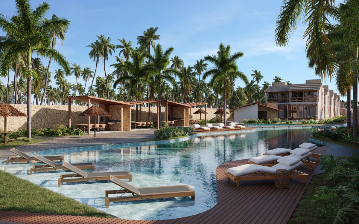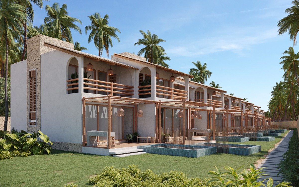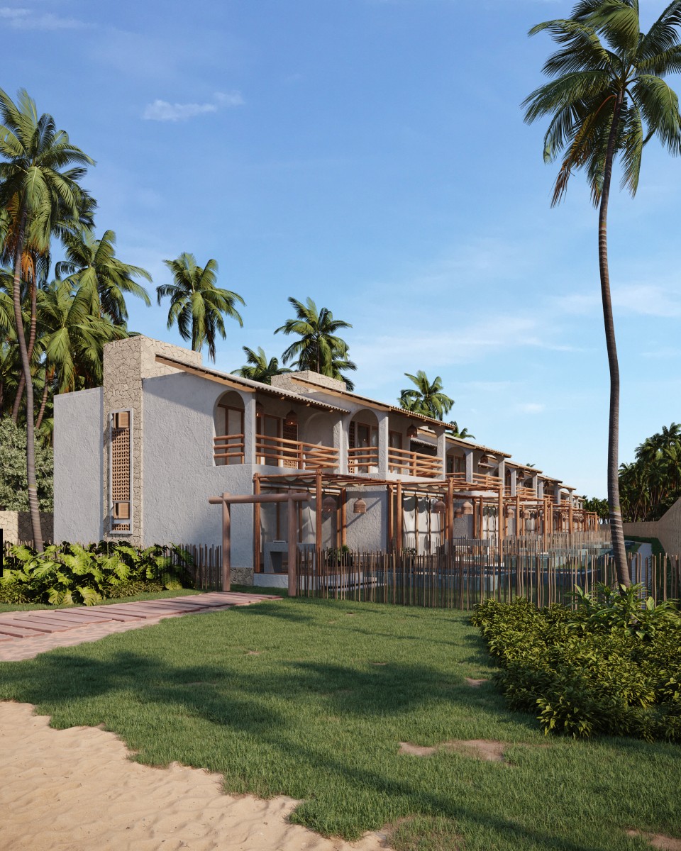O desenho propõe a diluição dos limites entre interior e exterior, criando uma experiência contínua de habitar. Materiais naturais como madeira, palha e vidro constroem uma estética essencial, que une sofisticação e simplicidade em um conceito de luxo descalço, profundamente conectado ao contexto litorâneo. A cobertura de formas fluidas e os amplos vãos favorecem a ventilação cruzada e o conforto térmico, fundamentais ao clima tropical.