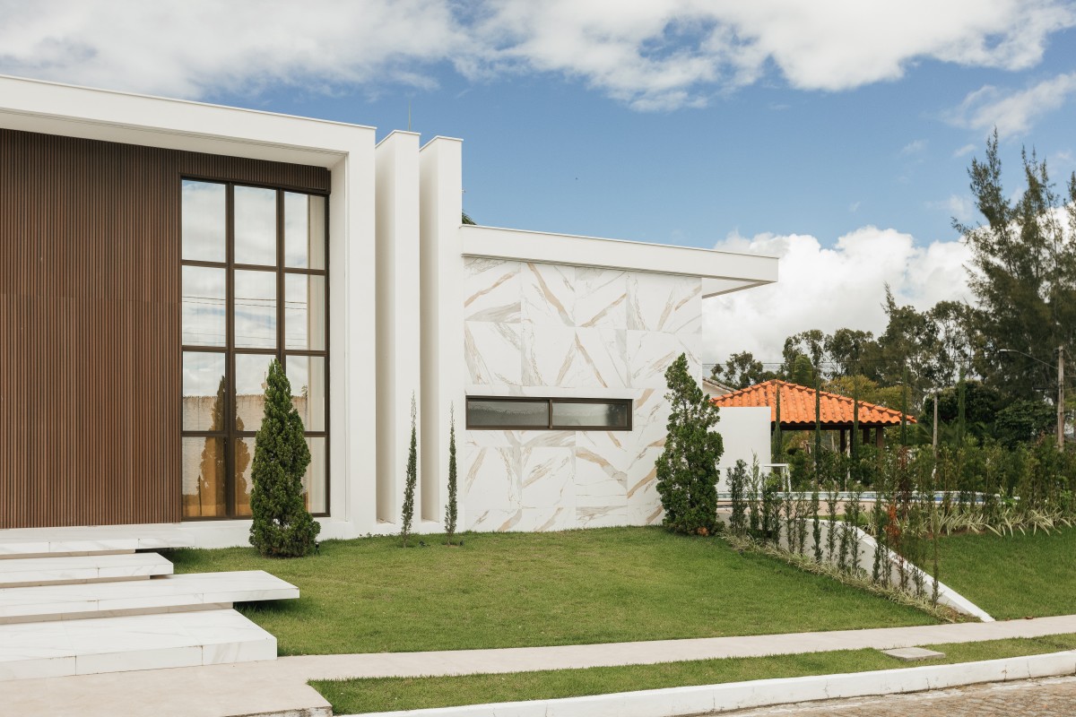 O nome Alvor, que remete ao despertar e à claridade, se materializa em volumes puros, linhas horizontais e grandes planos envidraçados que permitem à luz percorrer todos os ambientes ao longo do dia. À noite, a residência assume uma presença luminosa, revelando sua geometria de forma delicada e precisa.