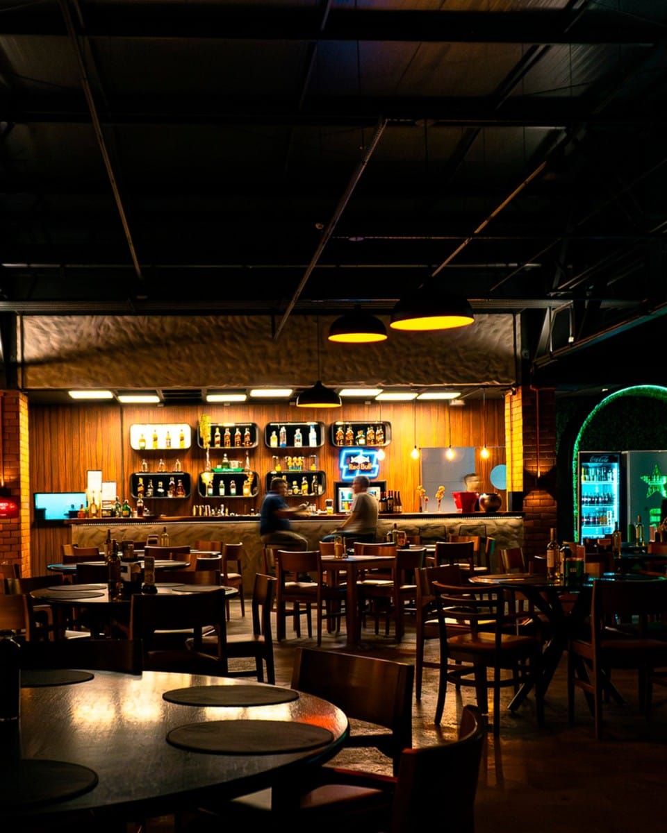 A disposição dos espaços internos foi pensada para proporcionar conforto e versatilidade, com áreas de convivência amplas, perfeitas para happy hours, encontros sociais ou jantares especiais. O layout inclui áreas com lounge e mesas para refeições, tudo projetado de forma a favorecer a fluidez do espaço e a circulação dos clientes, sem comprometer a privacidade e o conforto.